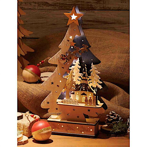 クリスマス ミニ [LED ウッドツリー] サイズ 幅20cm×奥行7cm×高さ40cm 仕様 素材◆木製 LEDライト付(常時点灯) 電池式(単3×2本 別売) 備考 木製のシックでおしゃれなツリーです。