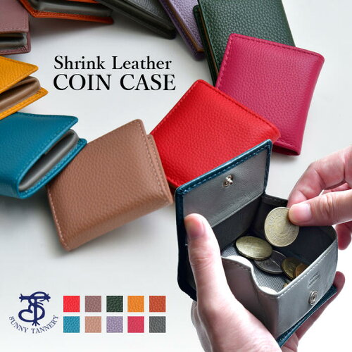 【メール便送料無料】【選べる10色】 小銭入れ コインケース 革 シュリンクレザー ボックス型 サニータンナリー Sunny Tannery メンズ レディース 小さめ コンパクト 財布 ウォレット 革財布 牛革 ギフト プレゼント