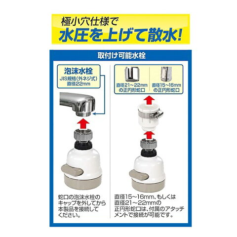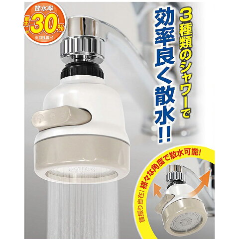 首ふり節水蛇口シャワー ●特徴 3種類のシャワーで効率良く散水!極小穴仕様で水圧を上げて散水します。