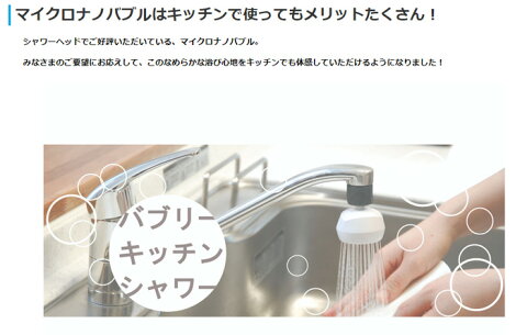 マイクロナノバブルは1分間あたり約6億個 首振り節水キッチンシャワーは驚きの節水&節約効果! 1か月あたりお風呂12杯分/1か月あたり2,466Lの節水効果 1年間で7,989円の水道代の節約効果 1年間でCO2 16.57kgの削減 ■重要確認事項■ 蛇口先端の金具を外すと、蛇口の先端の外側にねじが現れるタイプにはほぼ取り付け可能です。