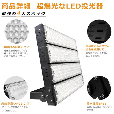 お得なセット販売はこちら 2台(値引き) 4台 (値引き) 6台 (値引き) 8台(値引き) 10台(値引き) 20台(値引き) 商品名 LED投光器1200W【20台セット】 製品仕様 ■消費電力 1200W ■全光束 240000LM ■色温度 電球色3000K/昼白色5000K/昼光色6000K ■調節角度 180° ■照射角度 120° ■演色性 Ra>85 ■防水等級 IP65 ■入力電圧 AC85V~265V AC100V/200V ■周波数 50-60Hz ■材質 PCカバー +アルミ+MEANWELL電源内蔵 ■サイズ 580mm*510mm*140mm ■本体重量 約25.5kg ■力率 0.95 ■環境使用温度 -20~+45℃ ■定格寿命 50000h ■保証期間 二年 特徴 ★