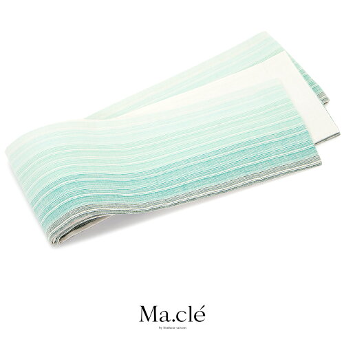 【8/24~29★全品クーポン最大500円OFF】浴衣 帯 半幅帯 リバーシブル Macle マクレ 創美苑オリジナル 青緑系 ブルーグリーン 白 ホワイト グラデーション 縞 綿麻 両面 夏 夏祭り 花火大会 女性帯 細帯 半巾帯 【あす楽対応】