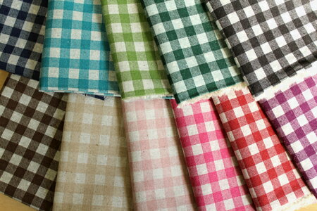 「生地と布の専門ネットショップ」20111219【綿麻リバーシブル】 【コットンリネンキャンバス生地】 《両面デザインのリバーシブル》 《格子柄とピンドット》11色からお選びいただけます。