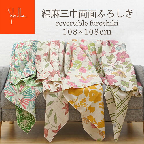 【在庫限り】 風呂敷 ふろしき シビラ 大判 綿麻 三巾 108cm 送料無料 リバーシブル 両面 フロシキ タペストリー 日本製 Sybilla おしゃれ かわいい 可愛い オシャレ テーブルクロス 贈り物 プレゼント ギフト marsyf108