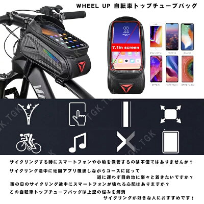 WHEELUP トップチューブバッグ 自転車 サイクリング フロントチューブ ポーチ ロードバイク スマホホルダー 7インチ対応 大型機も楽 防水通気 フレームバッグ 【送料無料】