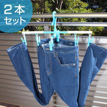 洗濯ハンガー らくらくズボンハンガー伸縮 2本組 太竿対応 ( ピンチハンガー 速乾 ボトムス ズボン パンツ スカート 洗濯物干し 洗濯用品 ランドリー )