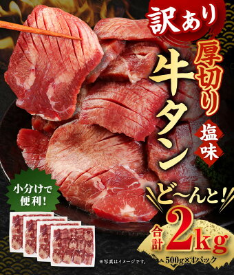 【ふるさと納税】【訳あり】 塩味 厚切り 牛タン 合計2kg 軟化加工 500g×4パック 牛肉 肉 スライス おかず ご飯のお供 焼き肉 バーベキュー BBQ 惣菜 不揃い 冷凍 送料無料