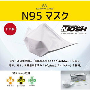 【送料無料】マスク N95 日本製 不織布 くちばし型 個包装 粉塵 かぜ 花粉 ほこり SEK KOKORO CARE ココロケア