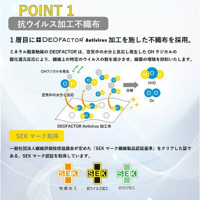 抗ウイルス加工不織布 1層目にDEOFACTOR Antivirus加工を施した不織布を採用。