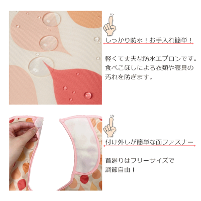■■■ ■■■ 商品詳細 お好きなカラーを3枚お選び頂けます! 軽くて丈夫な防水エプロンです 毎日の食事の中で衣類や寝具を食べこぼしから守ります。