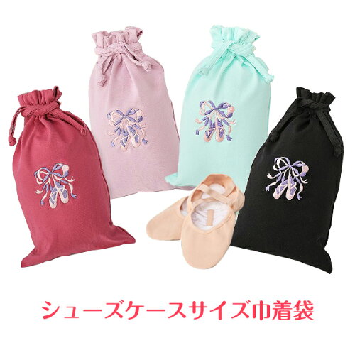 バレエ用品 バレエシューズ入れにも トウシューズ刺繍入り 巾着袋(シューズケース) トゥシューズ バレエ雑貨 ギフト プレゼント 巾着 誕生日 誕生日プレゼント ギフト 贈り物 プチギフト クリスマスプレゼント クリスマスギフト 1000円ポッキリ