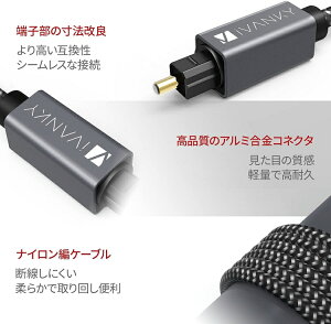 耐久性に優れたナイロンケーブルを使用し、従来のPVC素材よりもデジタル光ケーブルを効果的に保護し、柔軟性もあり扱いやすくなっている。