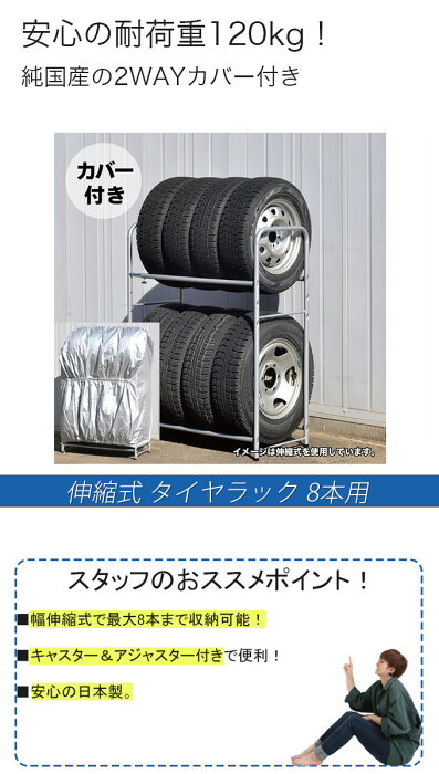 伸縮式 タイヤラック 8本用2WAYカバー付きタイヤラック(伸縮式)純国産で安心の耐荷重120kg。