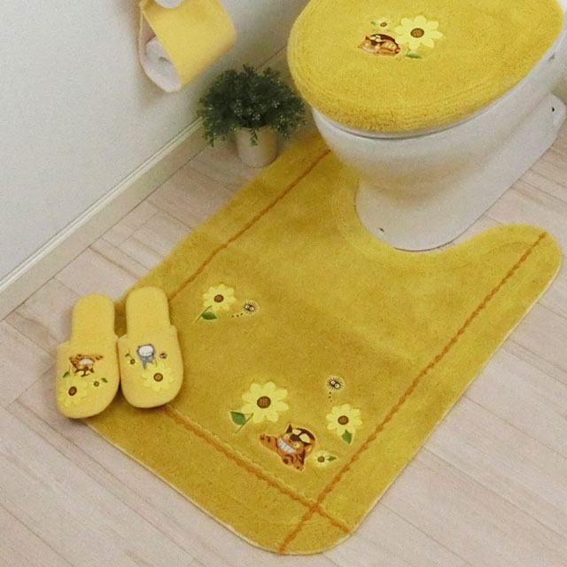 となりのトトロ 花のバス停 トイレマット 80×60 | 足元マット トイレタリー 黄色 風水