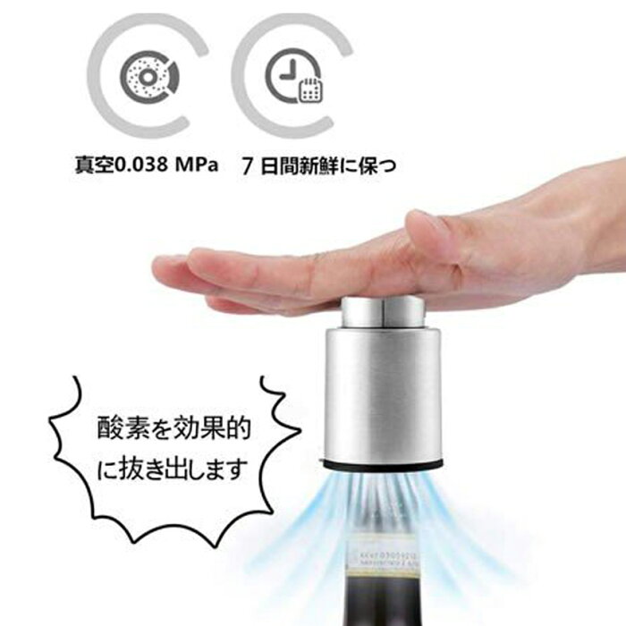 【鮮度を保持します】ワイン 栓 数回に押して素早くに瓶の中の空気を抜き出して、真空状態させます。