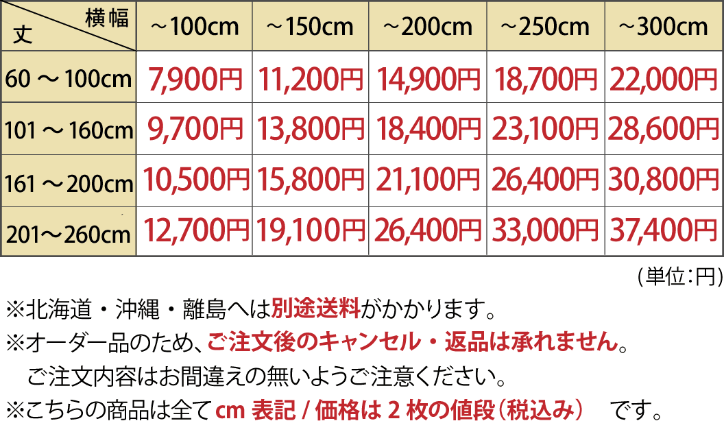 ※幅101cm以上の商品は継ぎ部分があります。