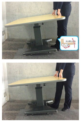 ・天板を持ち上げるだけでキャスターが出る。