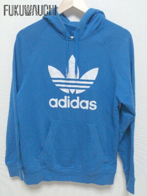 ◇ adidas アディダス トレフォイル 三つ葉 長袖 プルオーバー パーカー L ブルー レディース メンズ 【中古】
