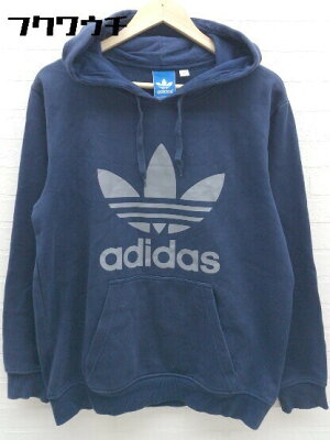 ◇ adidas アディダス 三つ葉 トレフォイル 長袖 プルオーバー パーカー サイズM ネイビー メンズ 【中古】