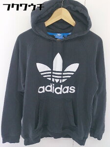 ■ adidas アディダス 三つ葉 トレフォイル 裏起毛 プルオーバー パーカー サイズO ブラック系 メンズ 【中古】